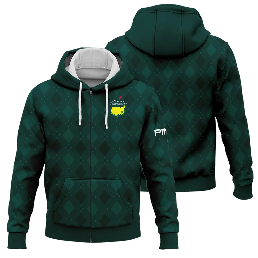 Dark Green Argyle Plaid Pattern Golf Masters Tournament Ping Zipper Hoodie Shirt Style Classic Zipper Hoodie Shirt