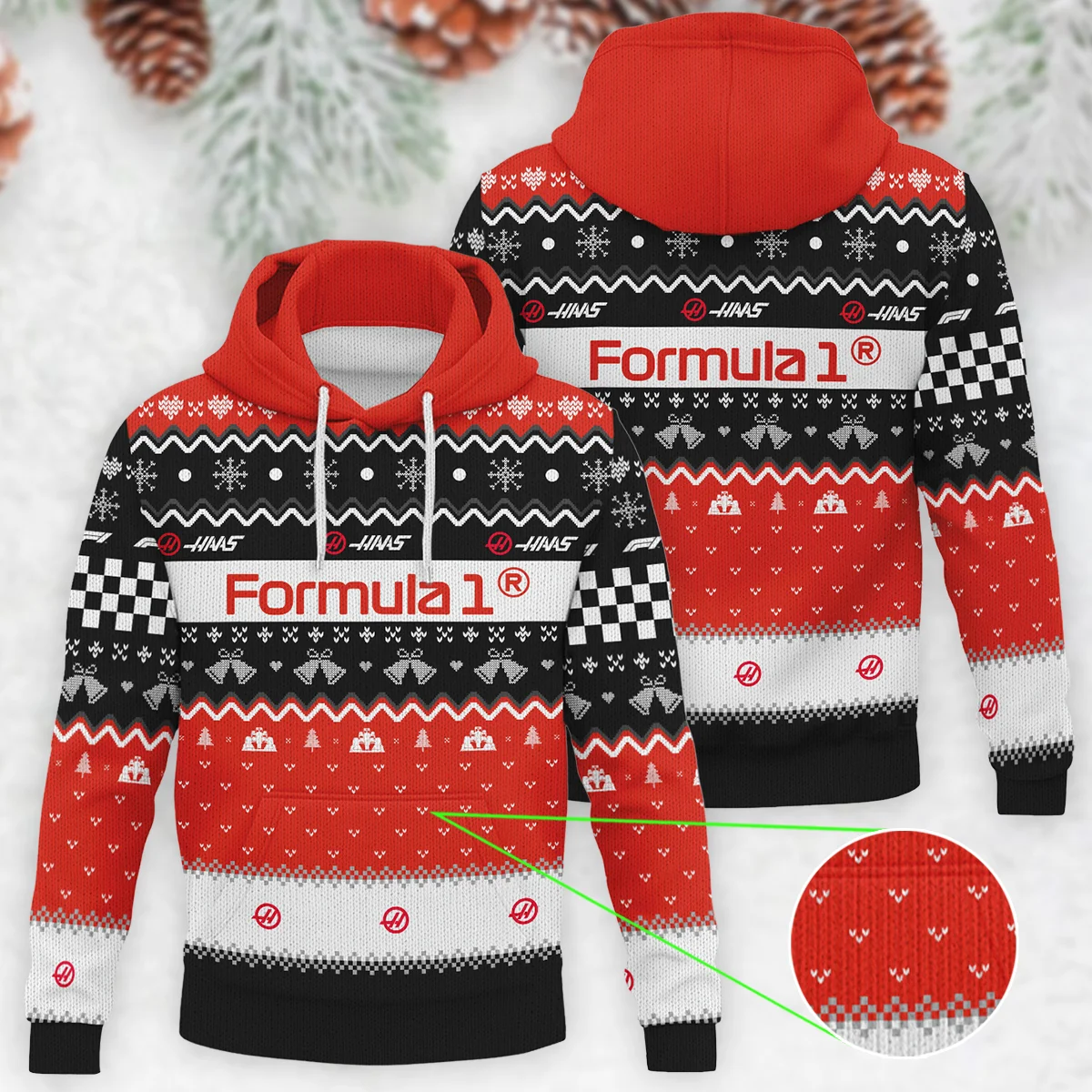 Xmas Pattern Kick Sauber Formula 1 – Knitted Hoodie BLVAF12209250A29KS – Formula Racing Apparel