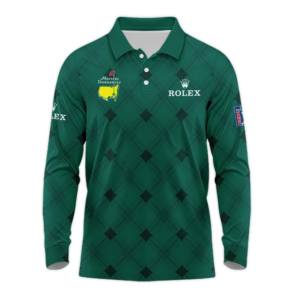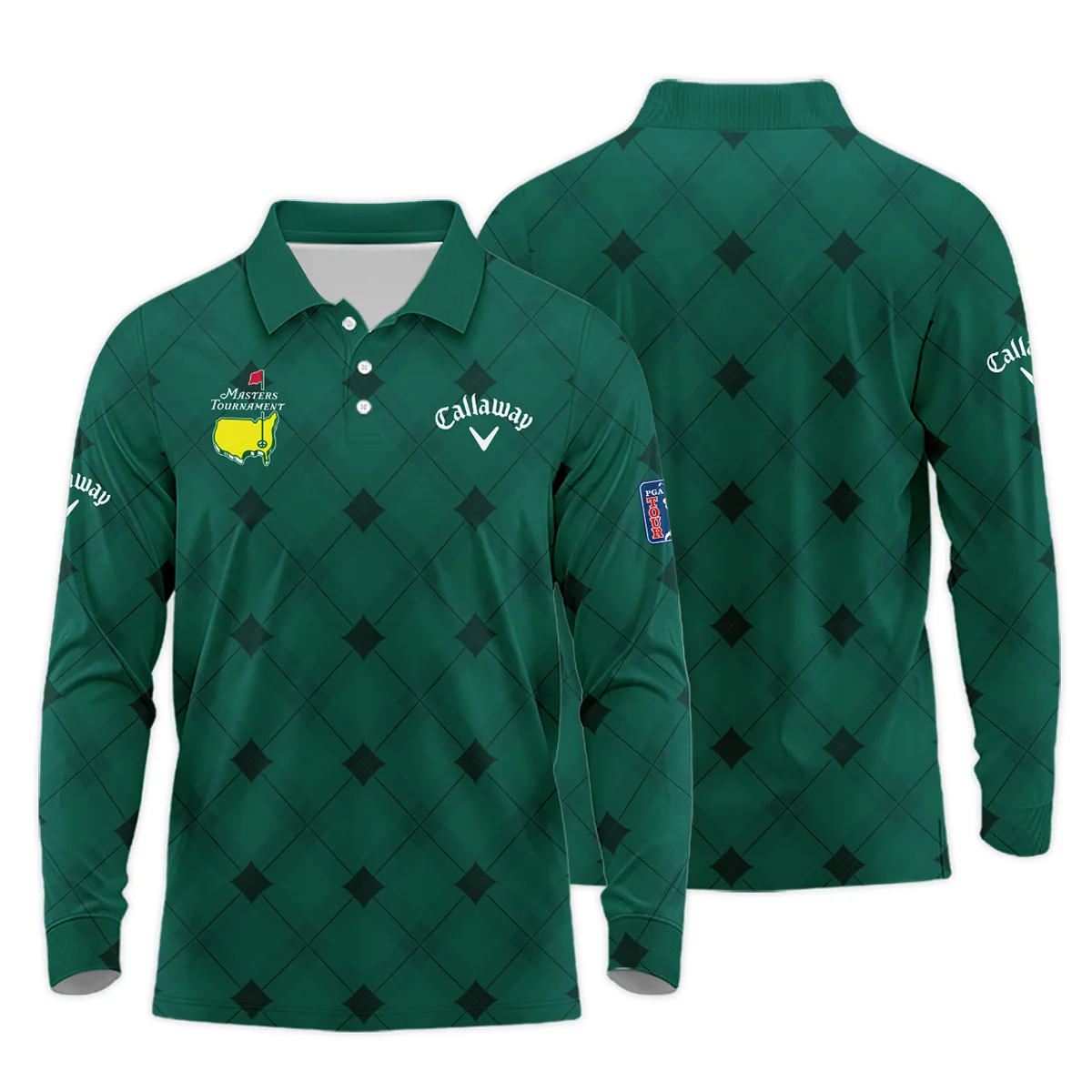 Golf Masters Tournament Green Argyle Pattern Callaway Long Polo Shirt Style Classic Long Polo Shirt For Men