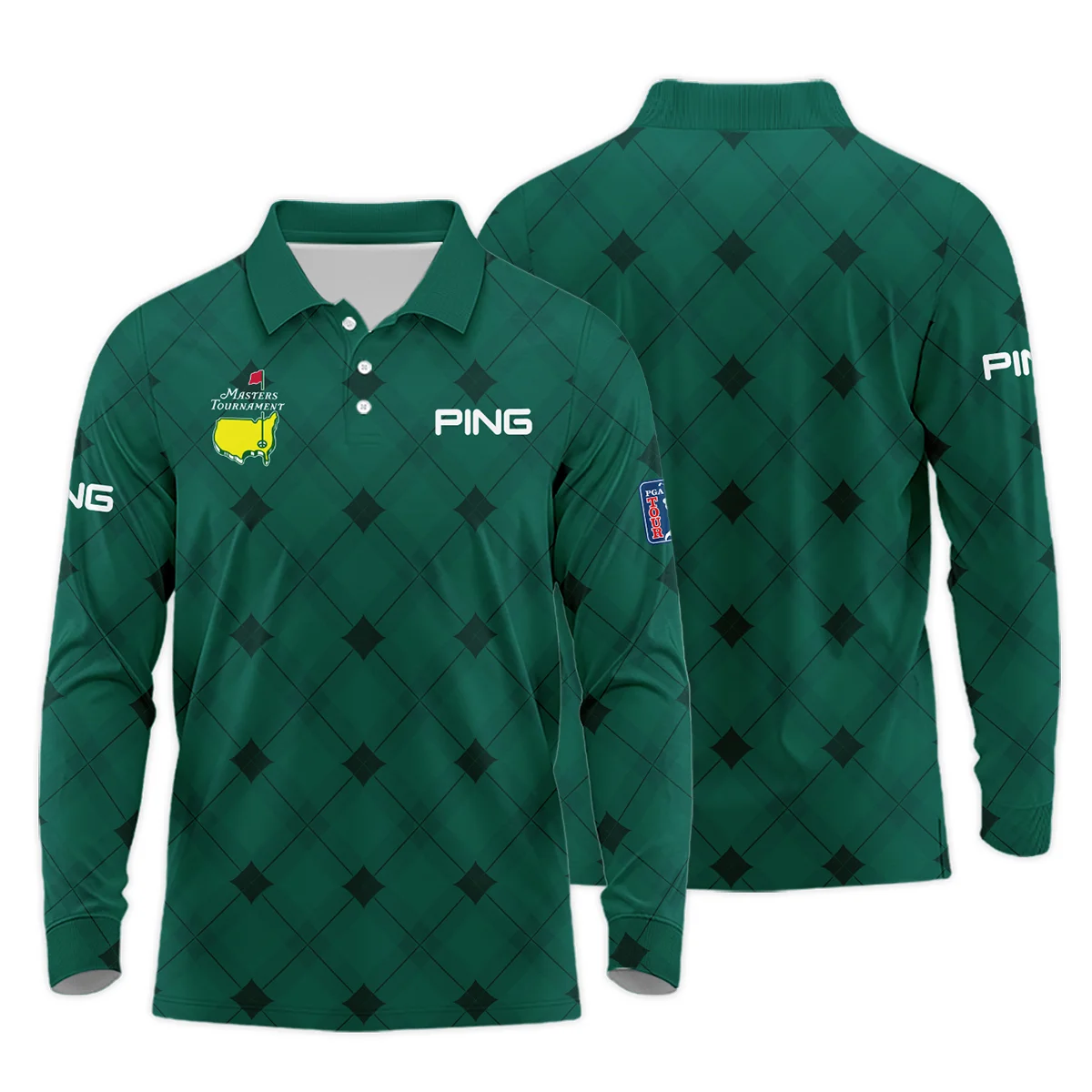 Golf Masters Tournament Green Argyle Pattern Ping Long Polo Shirt Style Classic Long Polo Shirt For Men