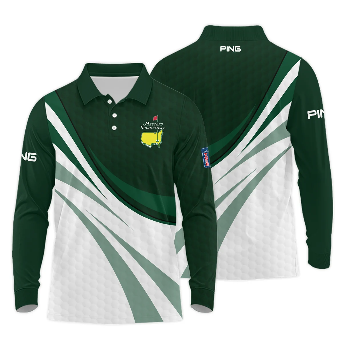 Golf Sport Masters Tournament Ping Long Polo Shirt Green Color Sports Golf Ball Pattern All Over Print Long Polo Shirt For Men