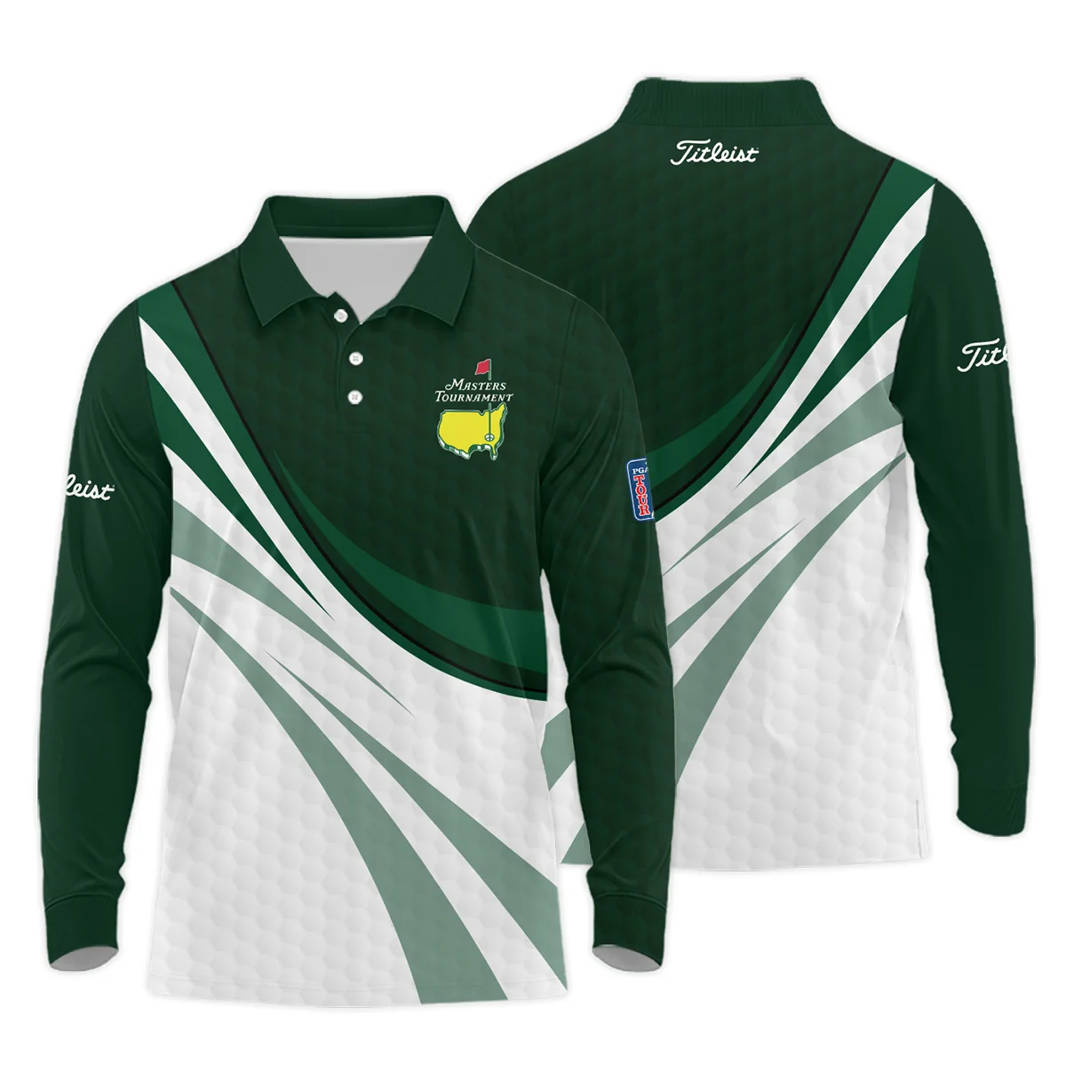 Golf Sport Masters Tournament Titleist Long Polo Shirt Green Color Sports Golf Ball Pattern All Over Print Long Polo Shirt For Men