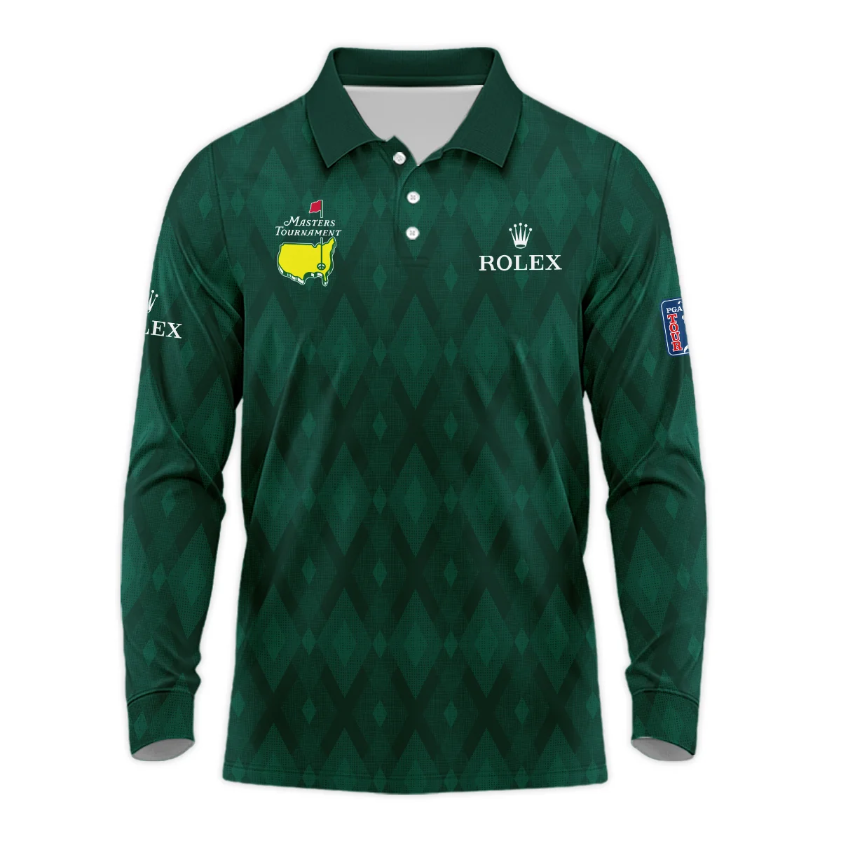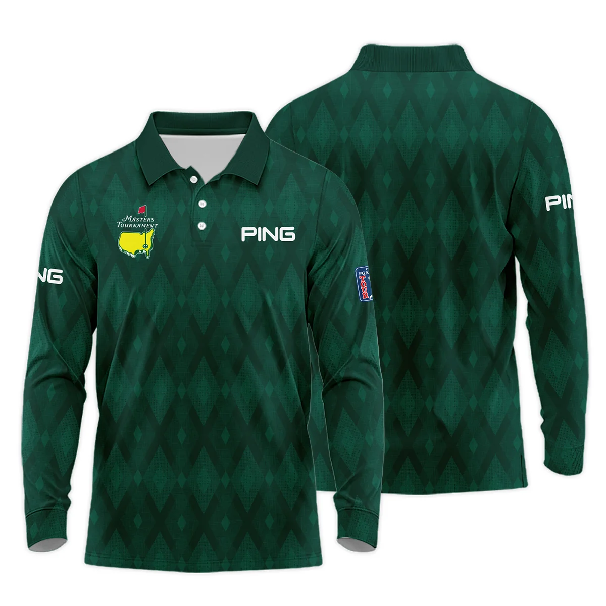 Green Fabric Ikat Diamond pattern Masters Tournament Ping Long Polo Shirt Style Classic Long Polo Shirt For Men