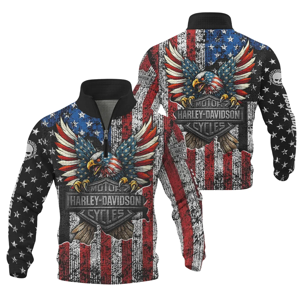 Harley-Davidson Motorcycle American Spirit Quarter Zip Quilted Waffle All Over Prints Gift Fan Love QTVAHL250226A13-QZW