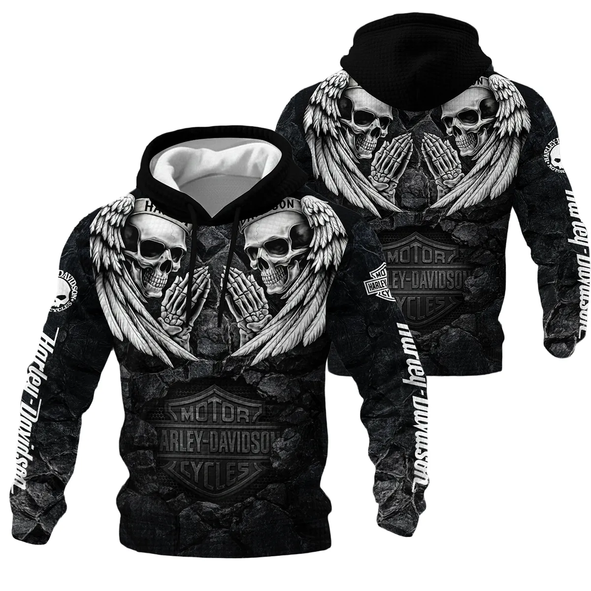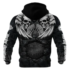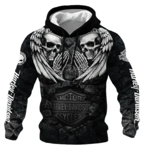 Harley-Davidson Motorcycle Dark Skull Angel Wings Hoodie Quilted Waffle Gift Fan Love QTVA2712HLC07-HQW