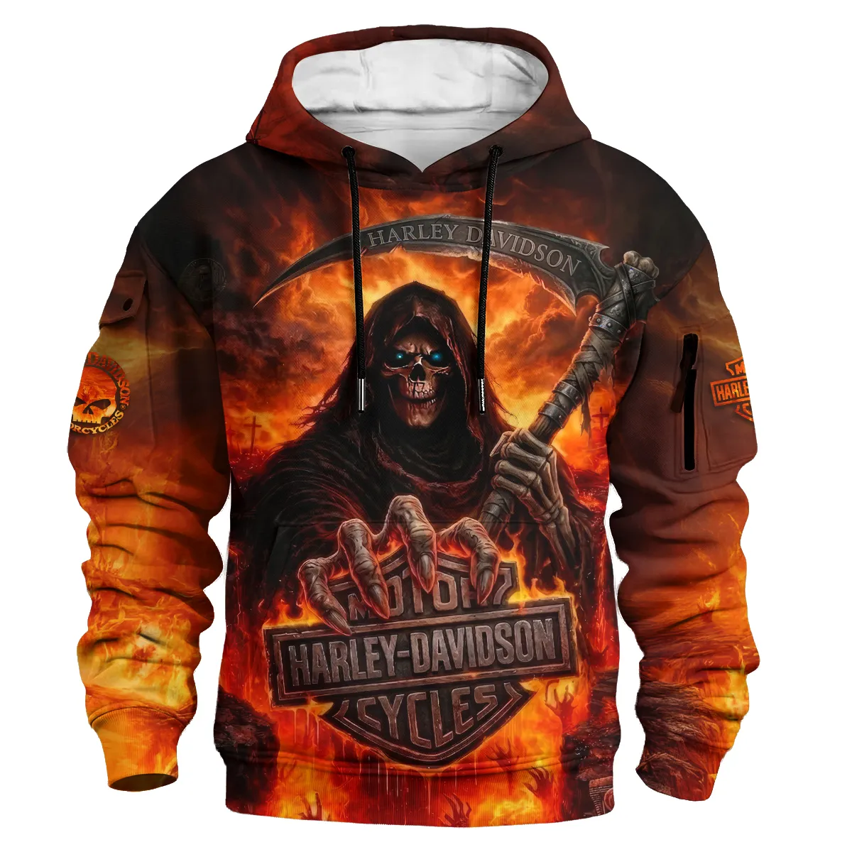 Harley-Davidson Motorcycle Hell Reaper Cargo Hoodie All Over Prints Gift Fan Love QTVAHL250226A17-LGE