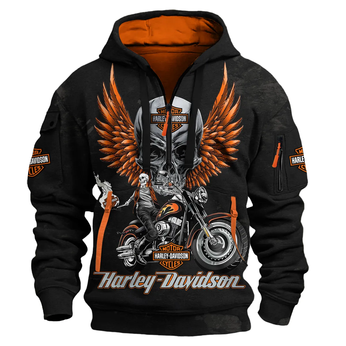 Harley-Davidson Motorcycle Inspired Fan Logo Hoodie Half Zipper QTHD250725BB2-HDF