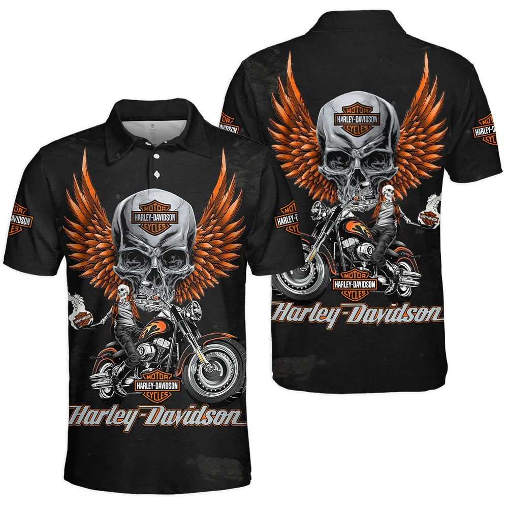 Harley-Davidson Motorcycle Inspired Fan Logo Polo Shirt QTHD250725BB2-PL