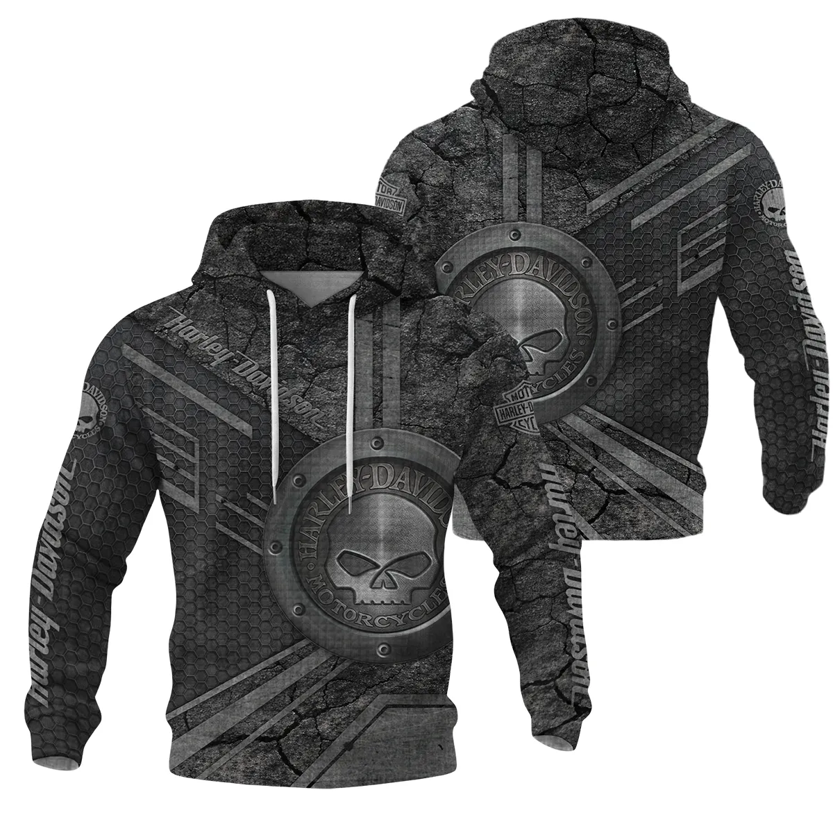 Harley-Davidson Motorcycle Iron Skull Hoodie Quilted Waffle All Over Prints Gift Fan Love QTVAHL250226A12-HQW