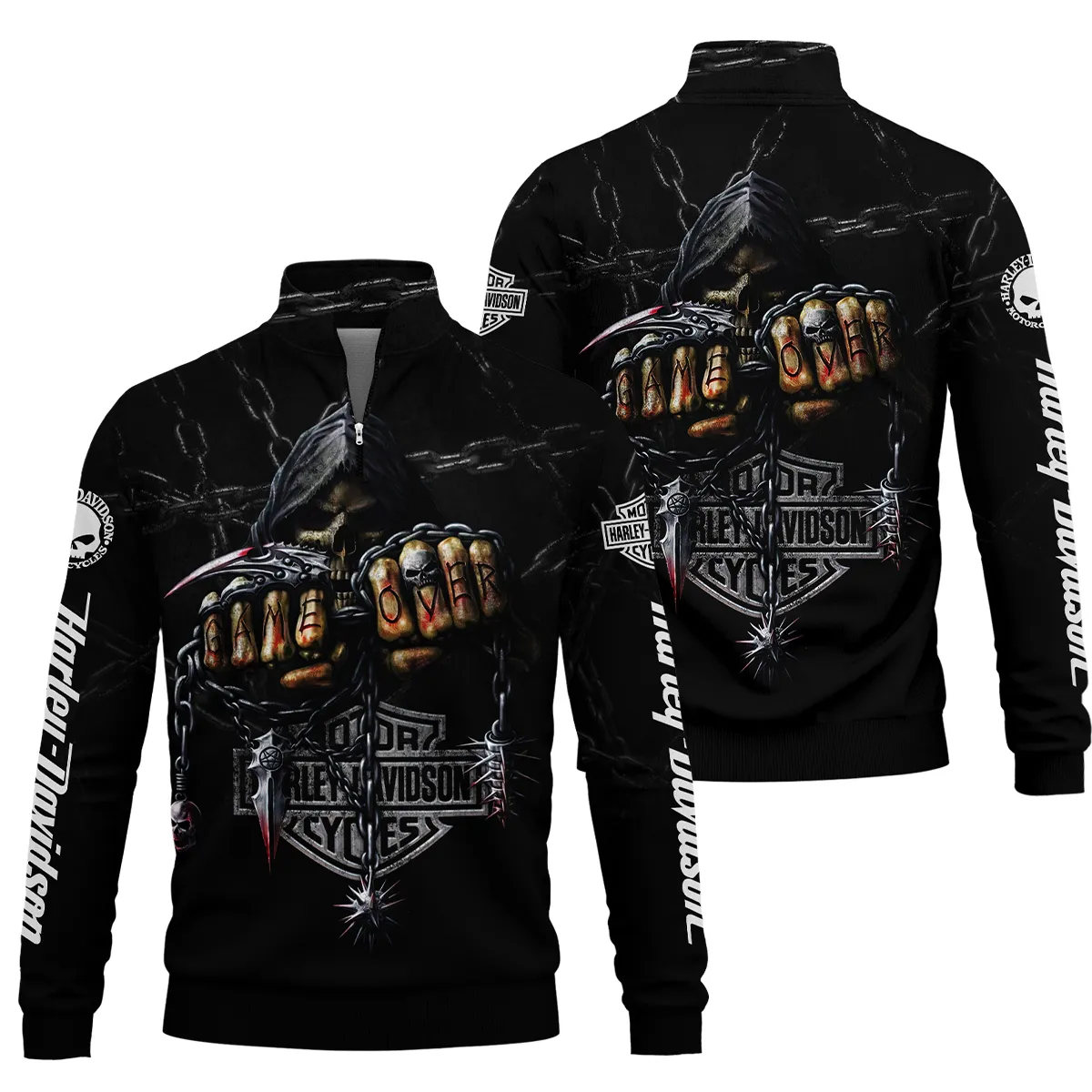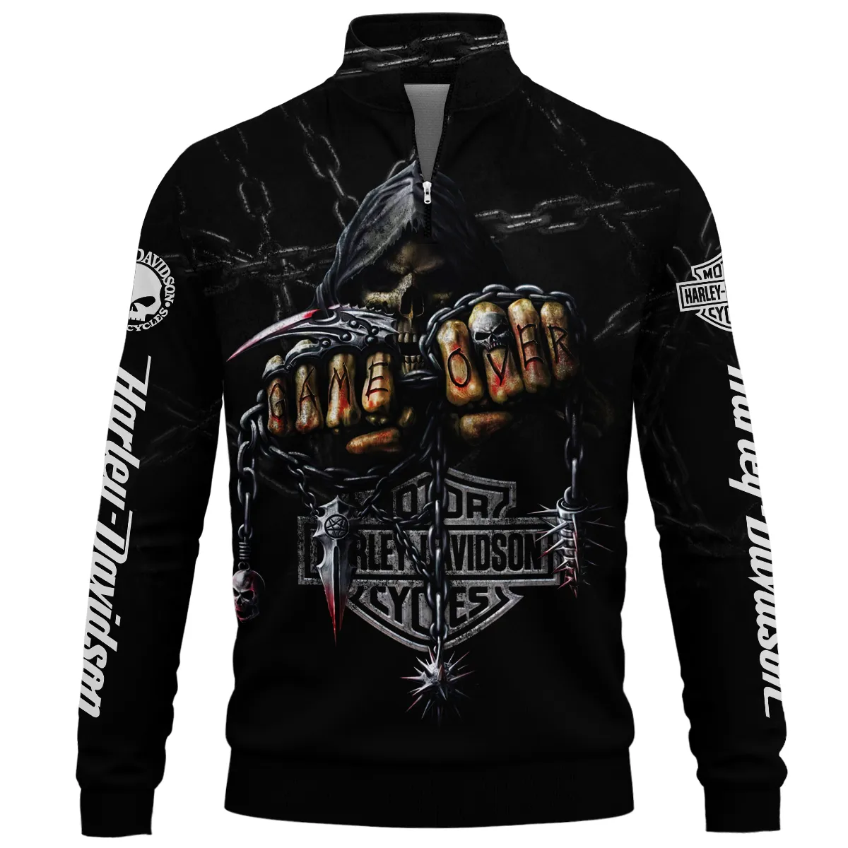 Harley-Davidson Motorcycle Hell Reaper Quarter Zip Sweatshirt All Over Prints Gift Fan Love QTVAHL250226A17-QTZ