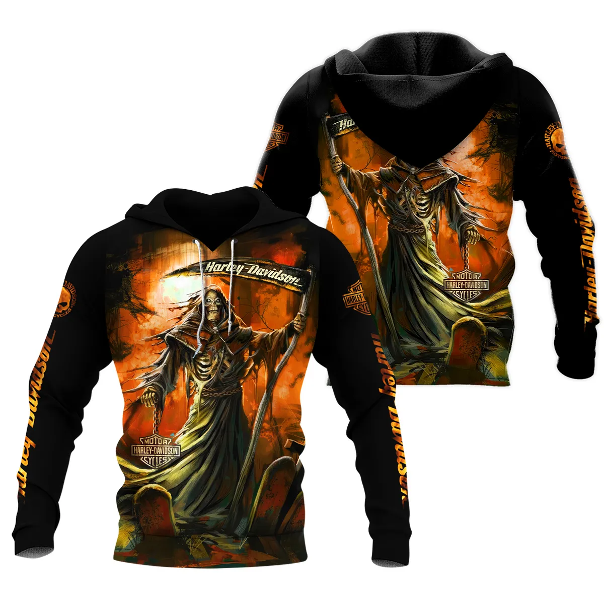 Harley-Davidson Motorcycle Hell Reaper Hoodie All Over Prints Gift Fan Love QTVAHL250226A17-HD