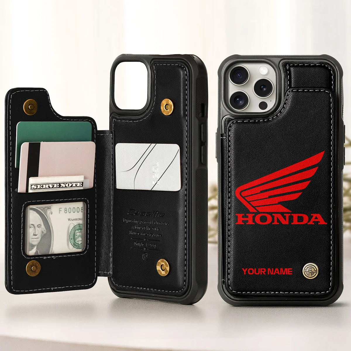 Honda Personalized Name – Leather Flip Wallet Phone Case QTMO270625A1HON