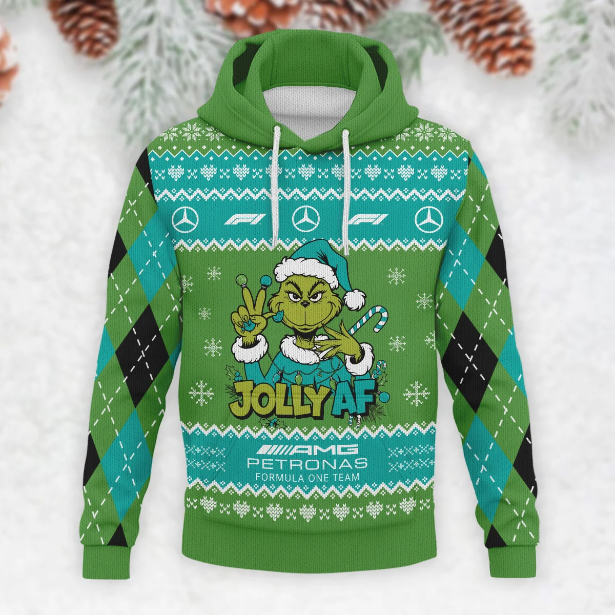 Jolly AF The Grinch Mercedes Formula 1 – Knitted Hoodie BLVAF12209250A16MER – Motorsport Apparel