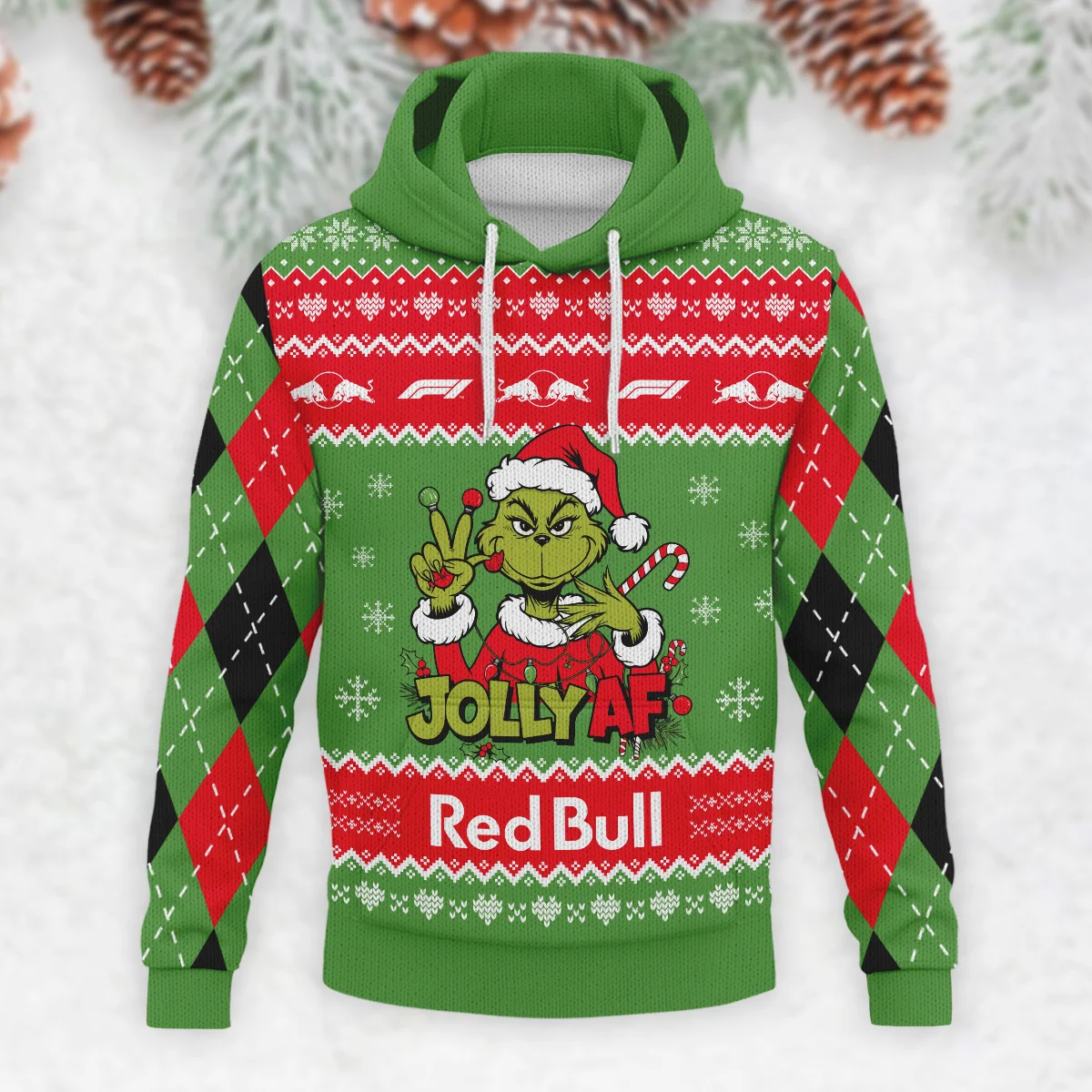 Jolly AF The Grinch Red Bull Racing Formula 1 – Knitted Hoodie BLVAF12209250A16RBR – Race Day Outfit
