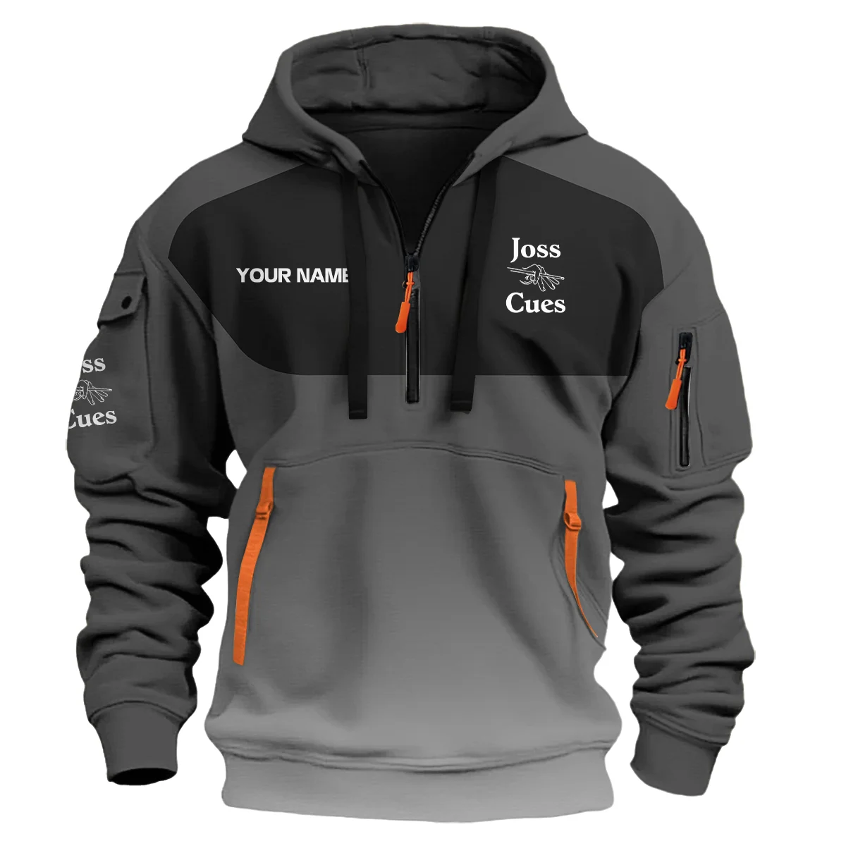 Joss Cues All Over PrintsHoodie Half Zipper QTBLA081125A1JOS