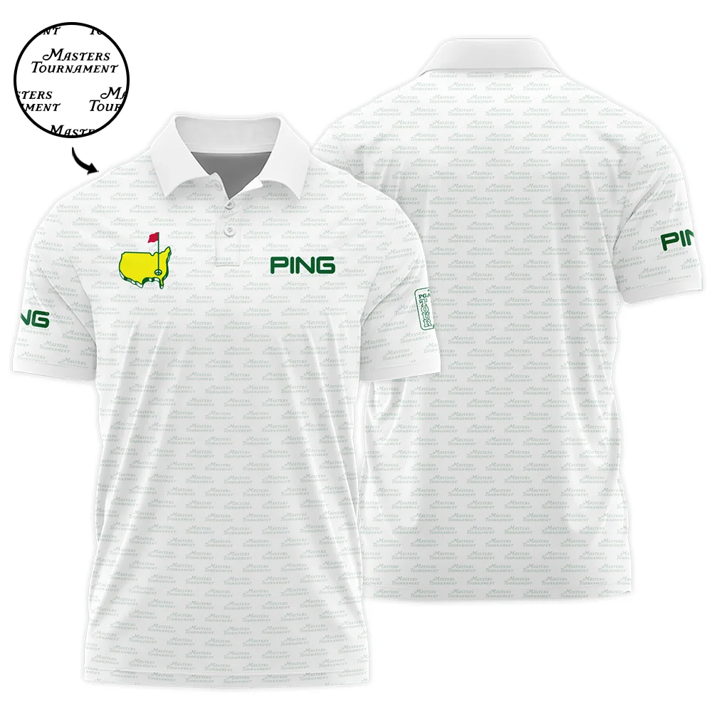 Masters Tournament Golf Ping Polo Shirt Logo Text Pattern White Green Golf Sports All Over Print Polo Shirt For Men