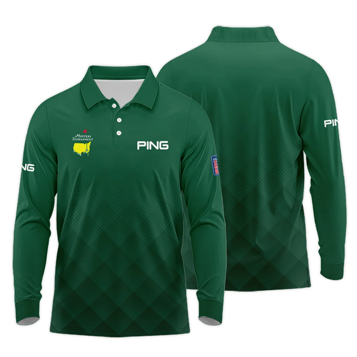 Masters Tournament Ping Gradient Dark Green Pattern Long Polo Shirt Style Classic Long Polo Shirt For Men