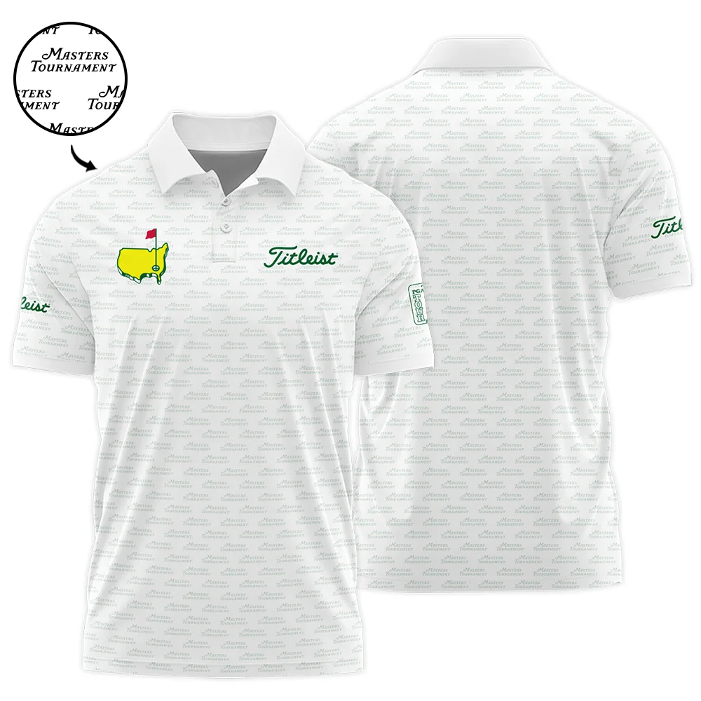 Masters Tournament Titleist Golf Polo Shirt Logo Text Pattern White Green Golf Sports All Over Print Polo Shirt For Men