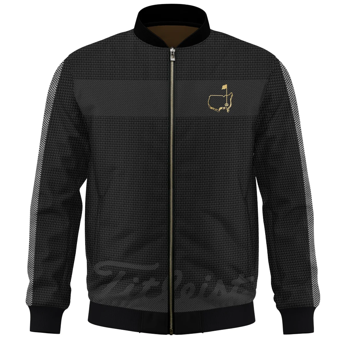 - Elastic ribbed cuff, collar, and bottom band.