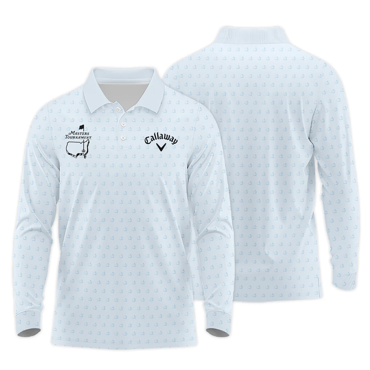 Pattern Masters Tournament Callaway Long Polo Shirt White Light Blue Color Pattern Logo  Long Polo Shirt For Men Pattern Masters Tournament Callaway Long Polo Shirt White Light Blue Color Pattern Logo Long Polo Shirt For Men