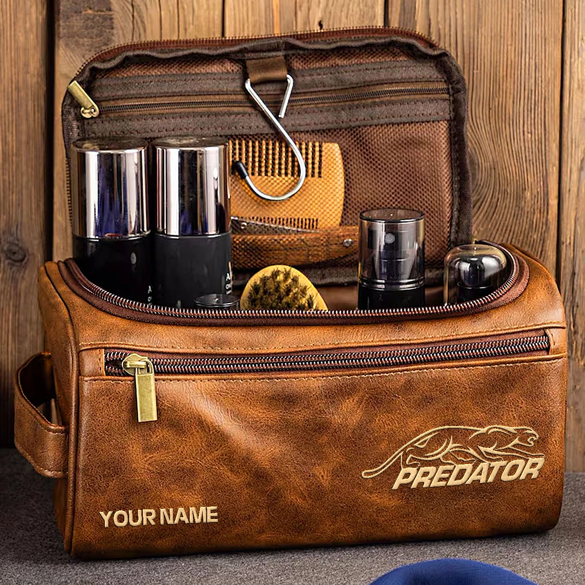 - Material: Crafted from premium PU leather, offering durability and resistance to abrasion. The waterproof lining ensures protection for your belongings, making it safe for storing shaving kits, bath essentials, and toiletries.