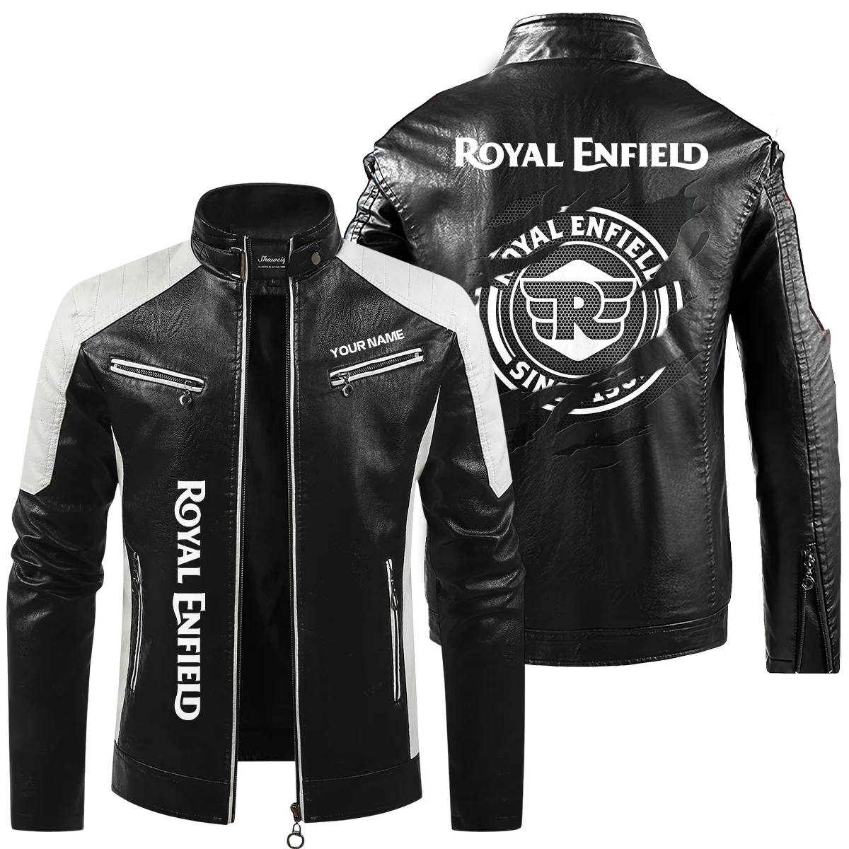 Royal Enfield Inspired Fan Logo Leather Jacket QTMO230625A1ROY