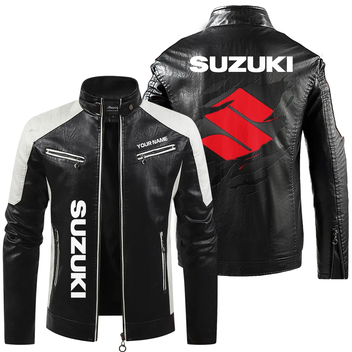 Suzuki Inspired Fan Logo Leather Jacket QTMO230625A1SUZ Suzuki Inspired Fan Logo Leather Jacket QTMO230625A1SUZ