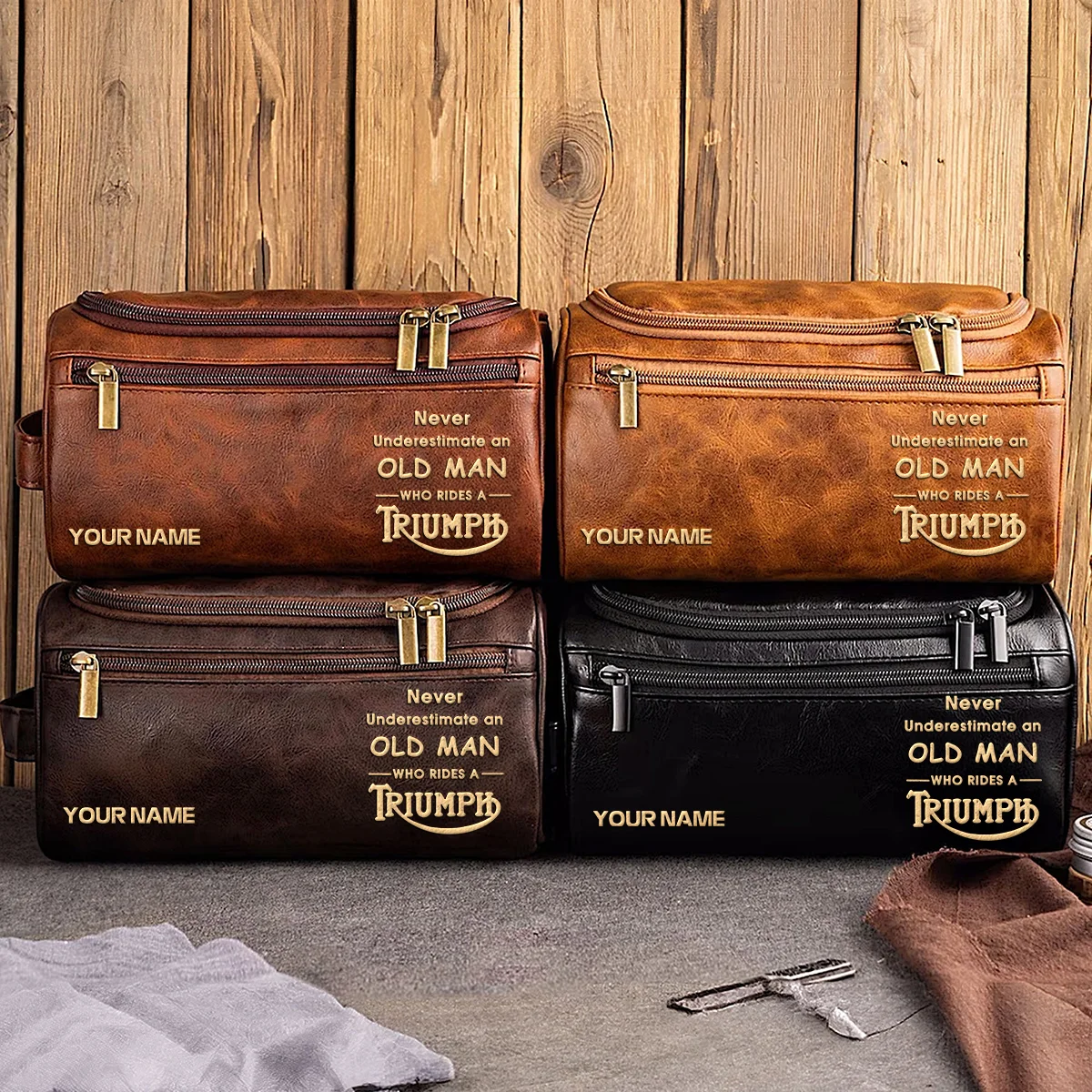 Triumph Motorcycles Exclusive Logo – Personalized Leather Toiletry Bag QTMT180425TRIA2