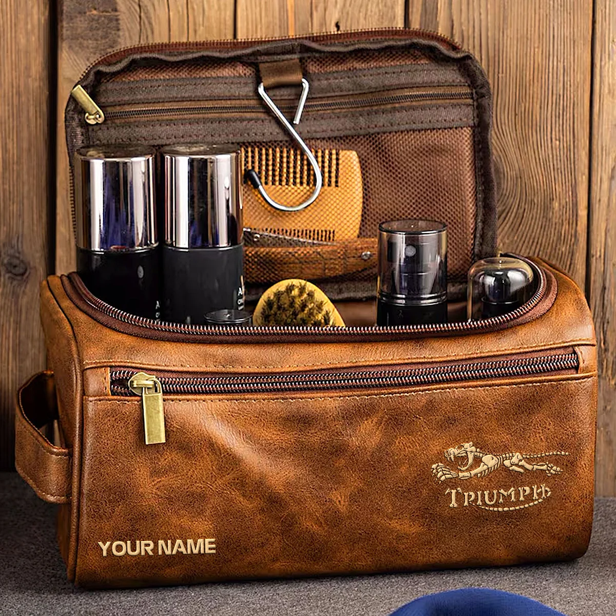 Triumph Motorcycles Exclusive Logo – Personalized Leather Toiletry Bag QTMT180425TRIA4